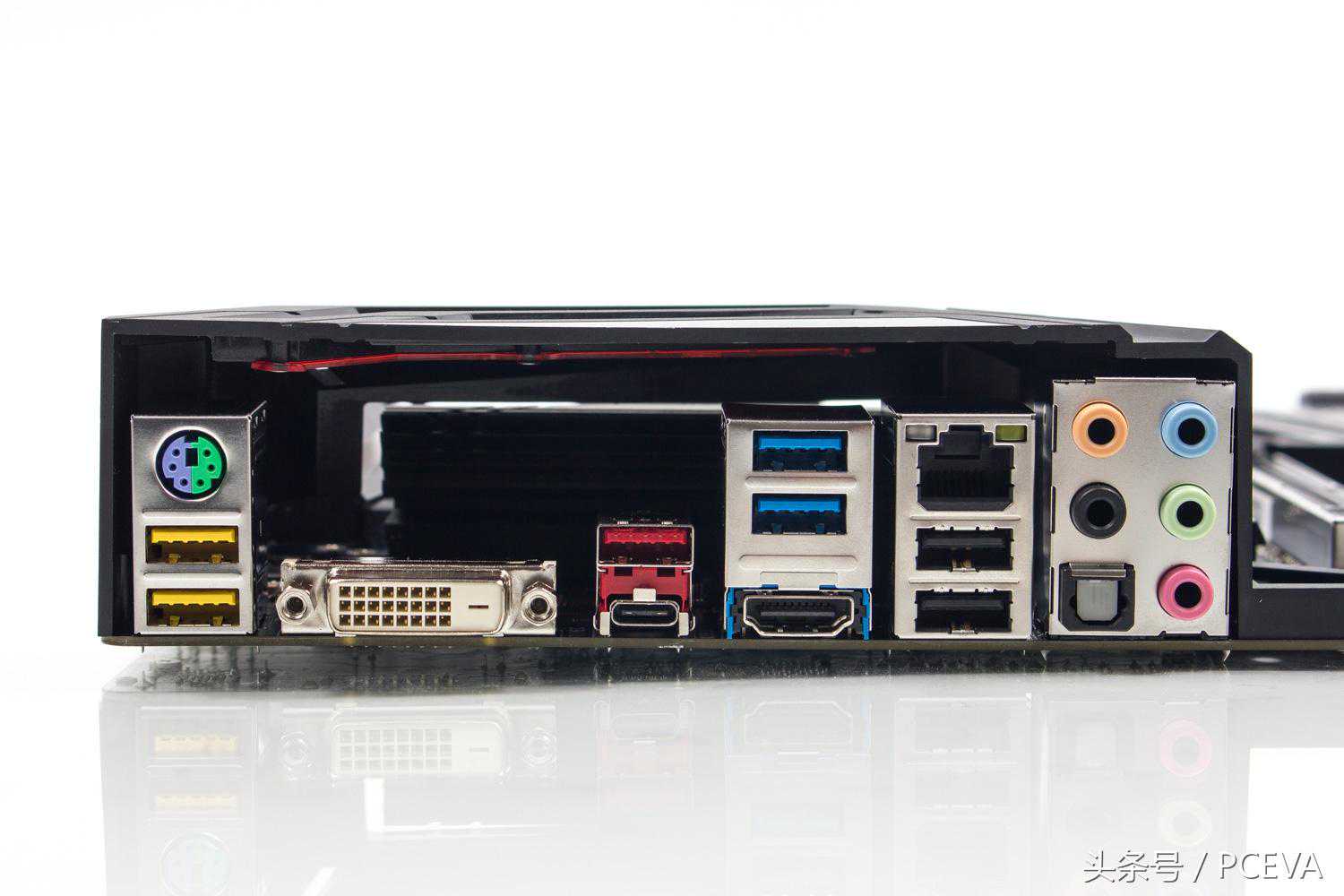 背部IO接口,从左到右:一个PS2键鼠+两个USBDAC接口,DVI-I接口、+C接口、两个接口和一个HDMI接口、RJ45网络接口和两个接口、5.1声道音频和SPDIF光纤接口。