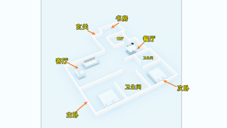 并且将路由器放到客厅,那么可以满足主卧、次卧、厨房的网络使用,书房较弱。