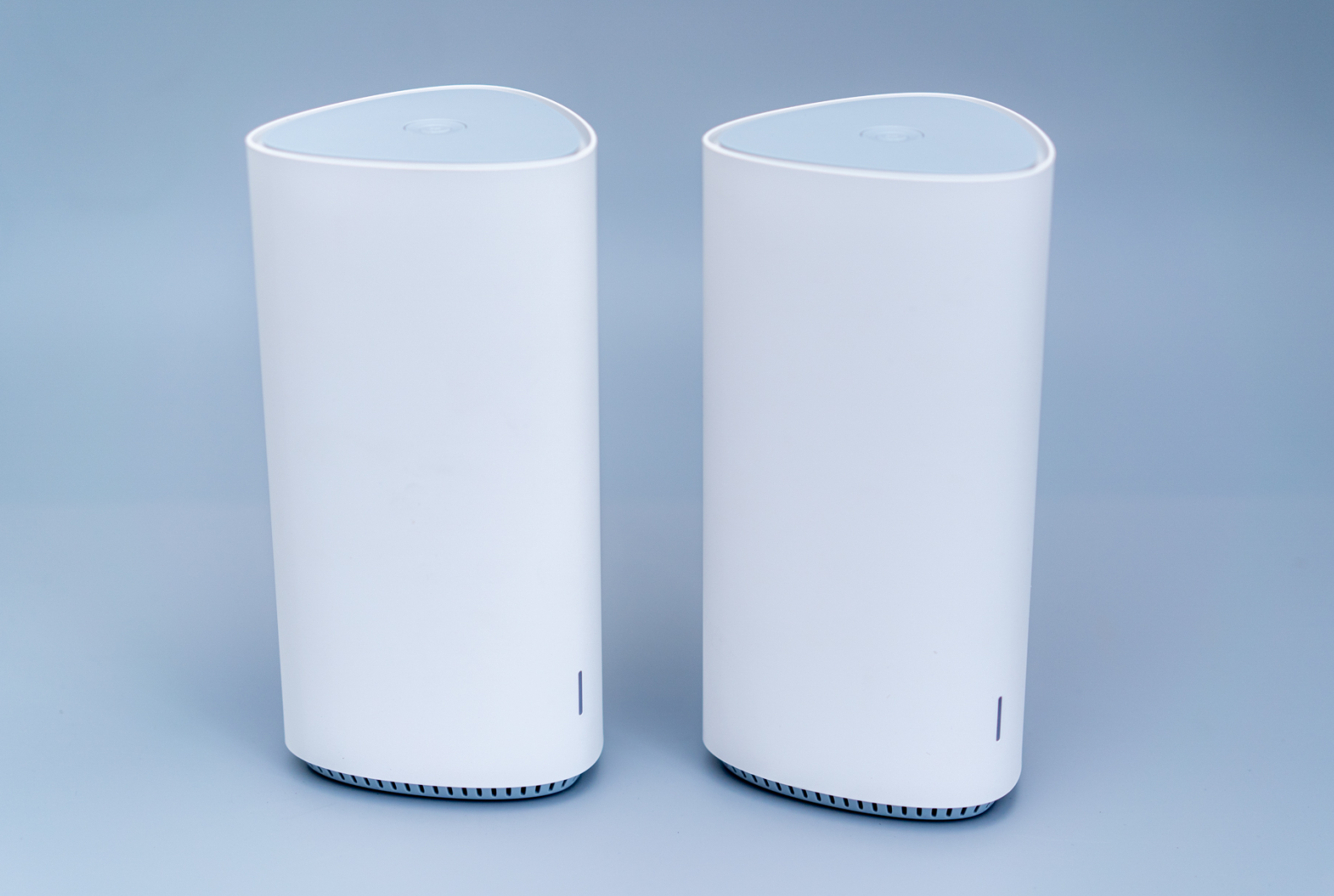 6、路由器是三角形柱状外形,体积比想象中略小一点,有点像小音箱: