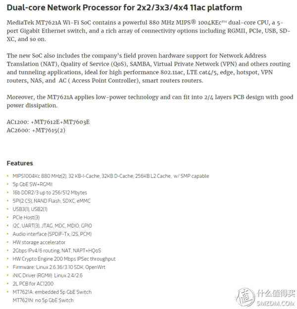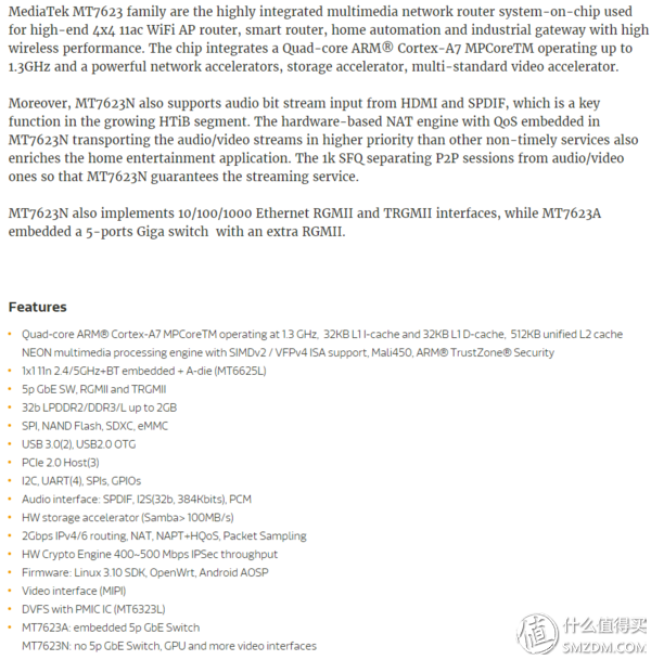 MT7623A/N这是目前联发科最高端的Soc了,四核的,支持高达2GRAMLPDDR2/DDR3/DDR3L,支持10M/100M/1000M以太网;目前还没看到采用该芯片的家用无线路由器产品。