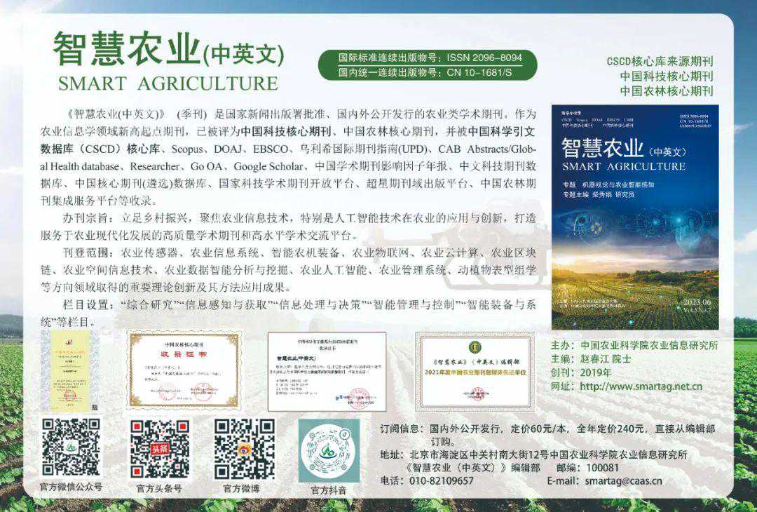 为方便农业科学领域读者、作者和审稿专家学术交流,促进智慧农业发展,为更好地服务广大读者、作者和审稿人,编辑部建立了微信交流服务群,有关专业领域内的问题讨论、投稿相关的问题均可在群里咨询。入群方法:加小编,备注:姓名、单位、研究方向,小编拉您进群,机构营销广告人员勿扰。
