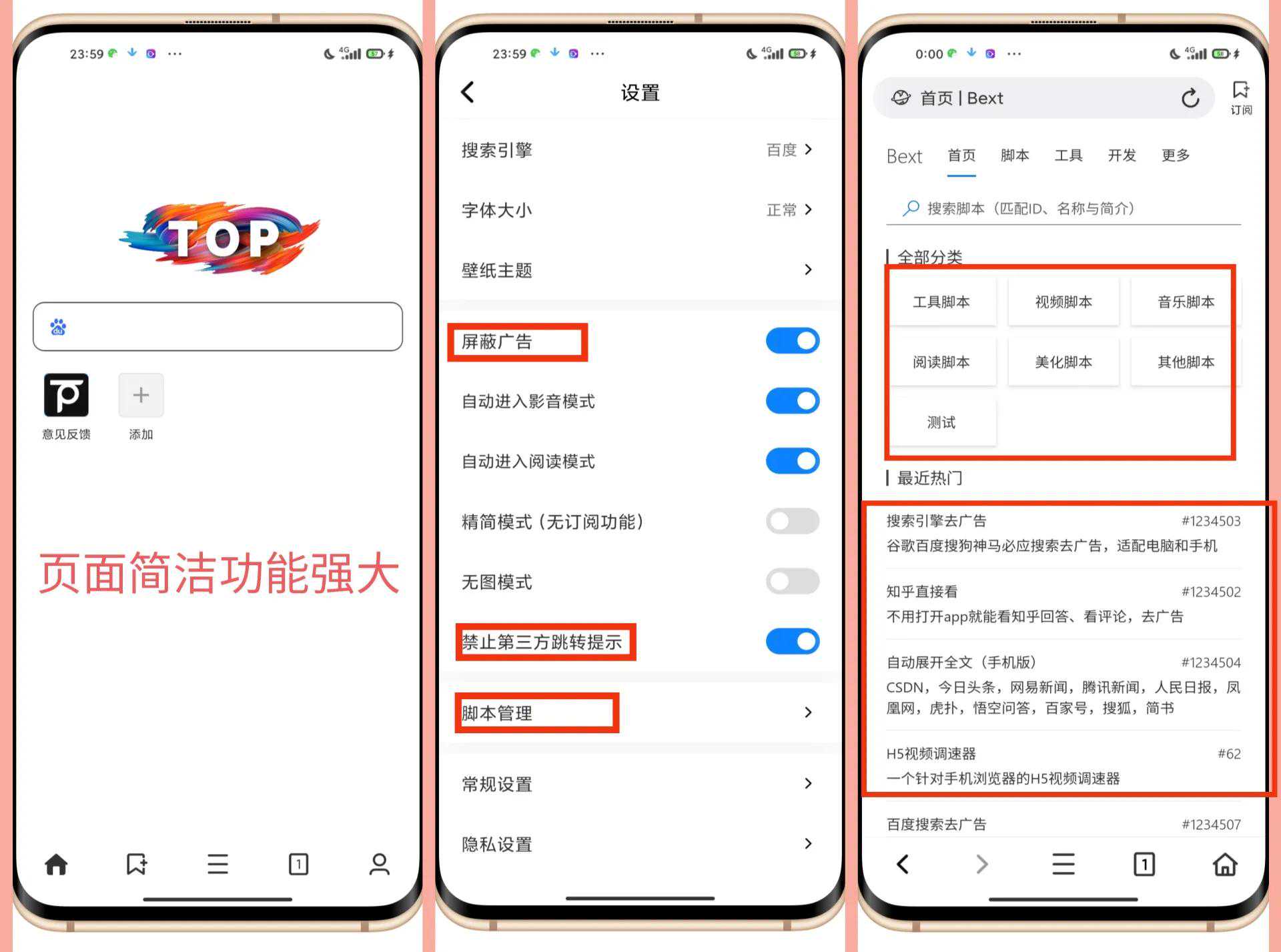 傻瓜式安装油猴脚本,浏览器扩展/插件,超强广告屏蔽,禁止网页跳转到应用,适合对浏览器要求高的人!