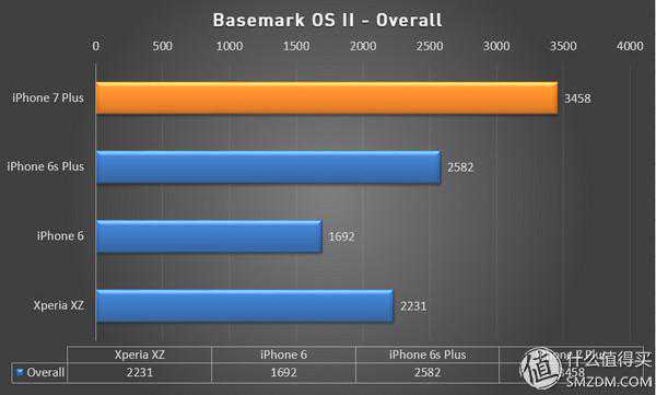 -Overall整体性能iPhone7Plus较6sPlus提升34%。而XperiaXZ略低于iPhone6sPlus。