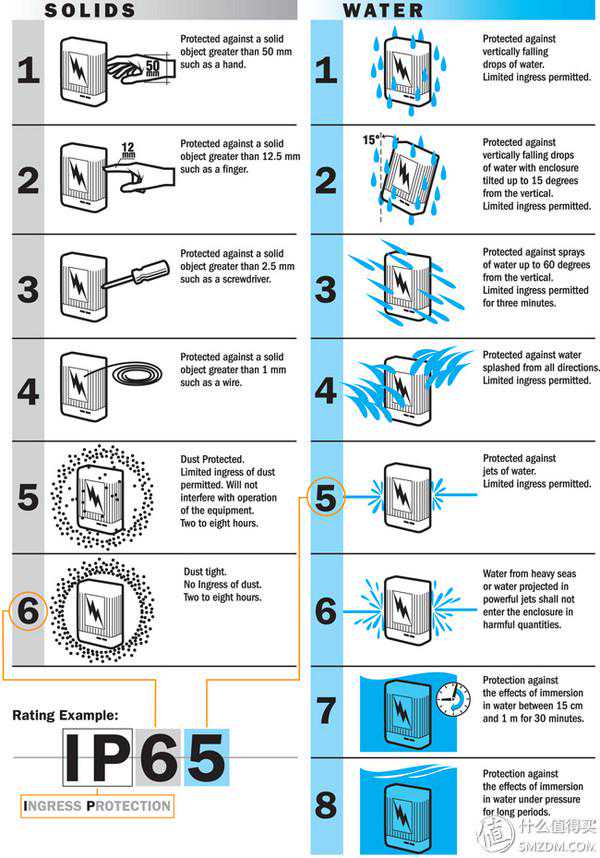 先来看看国际防护等级的评分指南。第一位数字代表防尘性能,第二位数字则为防水性能。