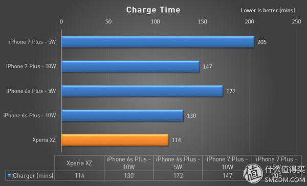 XperiaXZ可以在2个小时内充满2900mAh电池。而iPhone7Plus同样2900mAh则需要接近3个半小时的充电时间。如果使用iPad10W充电器,时间会减少到两个半小时,节省将近30%的时间。