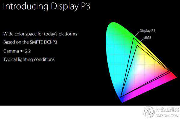 这里要说明的是,DisplayP3是Apple基于DCI-P3并且参考sRGB而修订出的特殊标准,与sRGB一致(DCI-P3Gamma为2.6),同时WhitePoint也与sRGB同为D65(6500K),并非DCI-P3的D50(5500K)。