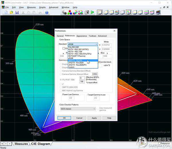 可惜的是HCFR不支持AppleDisplayP3,如果更改设置为DCI-P3会有比较大的偏差。