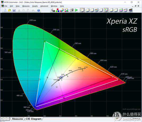 -XperiaXZCIE色域超过100%sRGB很多,官方标称为140%sRGB。绿色与红色有偏移。绿色会偏一些蓝。
